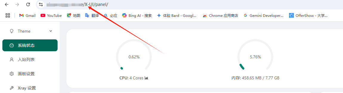 在浏览器地址栏中输入 服务器IP:2053 进入 3x-ui 面板。默认账号密码为:admin/admin,登入 3x-ui 面板。面板界面如下:
